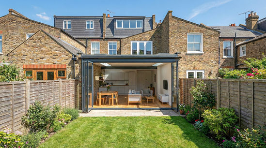 This Victorian terrace property is located near Wandsworth Common in London. The proposed plans involve extending the rear/side on the ground floor to create a spacious, open-plan kitchen/dining and living area. Additionally, frameless aluminum sliding folding doors will seamlessly connect the rear garden to the new family space.